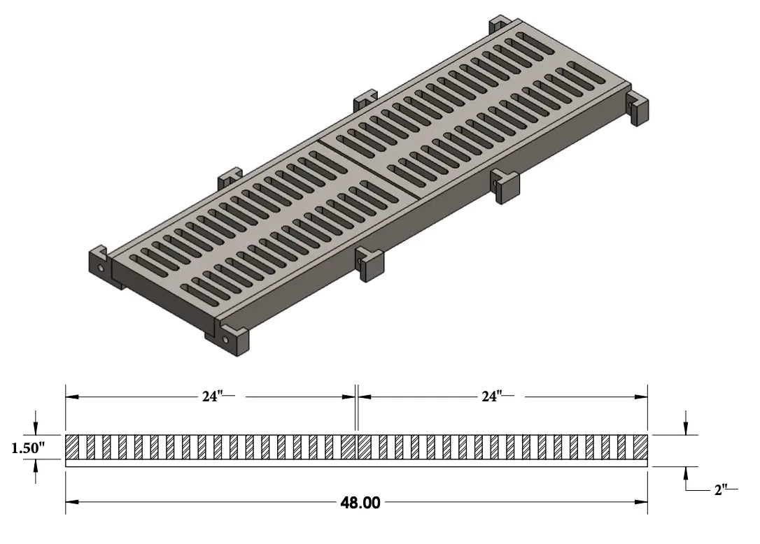 This unit is optimized for cast-in-place concrete trench installations, ensuring structural stability and minimal maintenance. Compatible with a wide range of heavy-duty trench drain systems, or perfect for custom site-built channels.