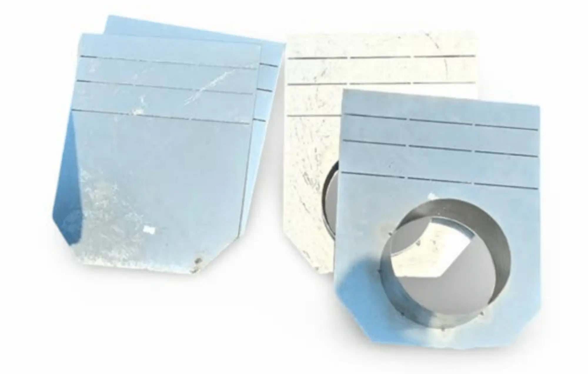 Dimensions: .06" x 14.09" x 18.11" Weight: 3.53 lbs Material: Galvanized Steel Accepts 8 inch or 12inch pipe