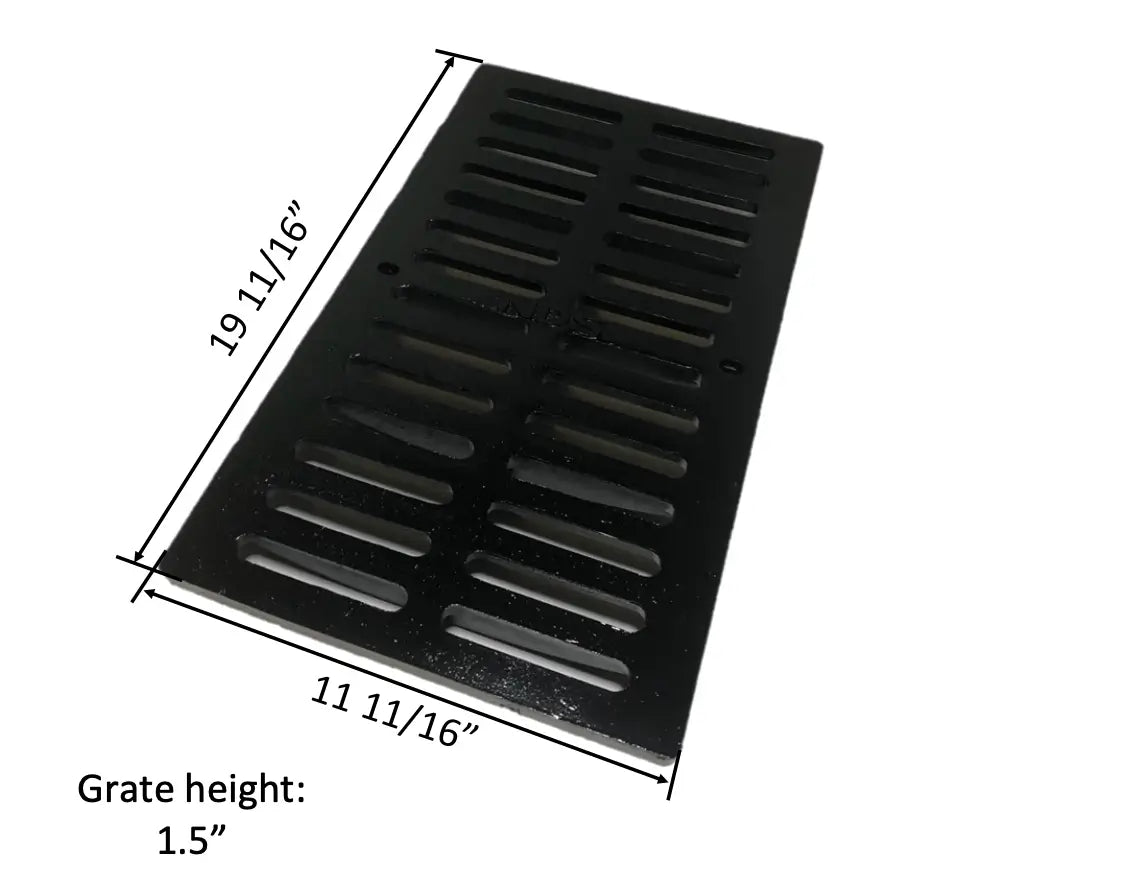 Material: Ductile Iron Color: Black Weight: 29.3 lbs Slot Openings: 5/8” x 4 1/8” Open Surface Area: 68.64 sq. inches per grate